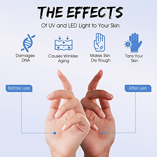 【Perché indossare i guanti】 I raggi UV delle lampade per unghie possono causare direttamente l'abbronzatura della pelle. L'uso frequente di lampade per unghie senza adeguate misure protettive renderà la pelle delle mani scura, secca, ruvida e invecchiata.