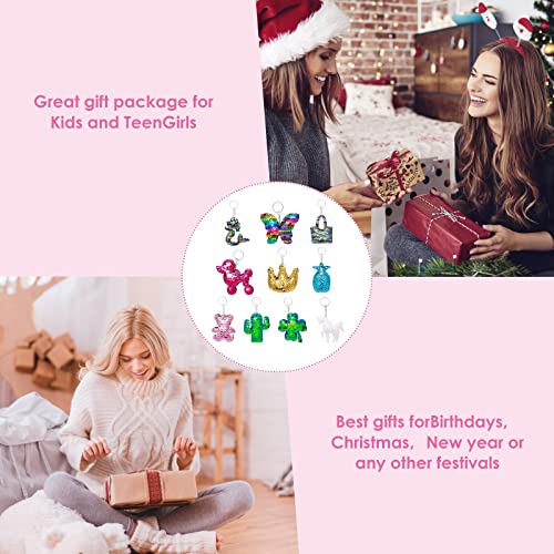 Molain 10 pezzi Portachiavi con paillettes, portachiavi bomboniere giochi per borsa zaino orso cactus ginnastica mini sorpresa regalo girly teen donne bambini ragazza