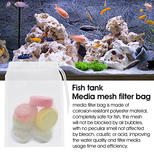 Dimensioni del sacchetto filtro per acquario: 23 x 13 cm. Diametro del foro della maglia: circa 0,2 mm, design a rete ultra fine è perfetto per l'uso con carbone attivo, fibra di torba, pellet, bio-ball, zeolite, pellet, ghiaia, anelli in ceramica, rimozione ammoniaca o qualsiasi altro mezzo filtrante per acquari.