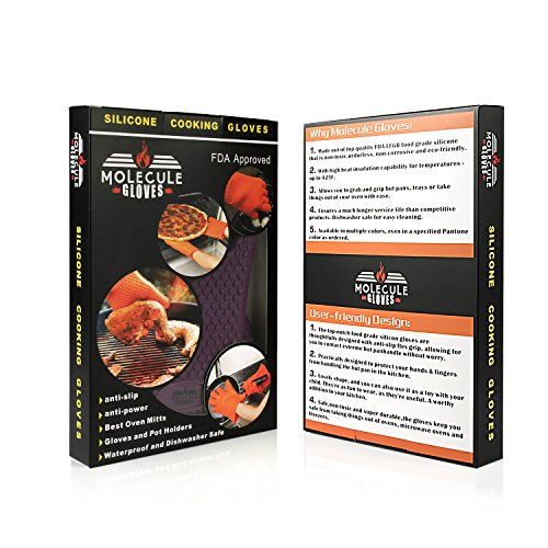 Molecule guanti grigliate di silicone, cottura 1 paio guanti, guanti barbecue perfette e presine anti-calore,, resistenza alle alte temperature, buon strumento per la cucina-impermeabile bollente, un formato misura più