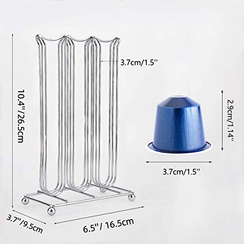 【Stabile & Antiscivolo】Il porta cialde è realizzato in materiale di ferro cromato di alta qualità. Ci sono quattro staffe alla base, che possono sostenere saldamente l'intero porta cialde e impedire che il porta cialde si agiti e scivoli. Verticale Porta Caffè Capsule Nespresso
