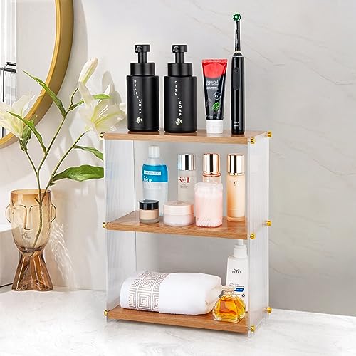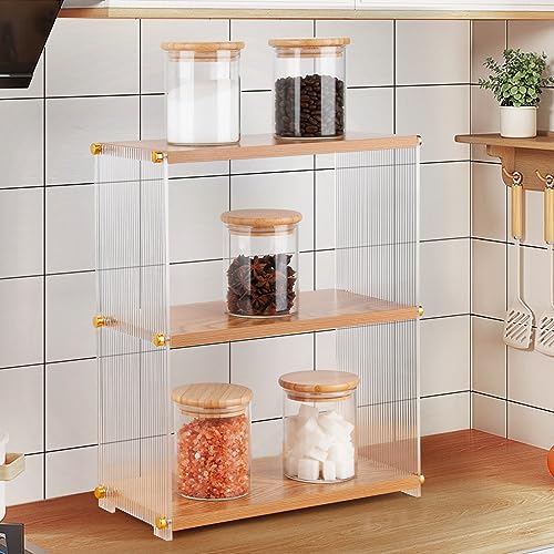 MOLEDINO Organizer da Appoggio in Legno e Acrilico a 3 Livelli per il Bagno, Scaffale per Credenza che può possono contenere profumi,Porta Spezie per la Cucina, Organizzatore da Bagno per il Bancone
