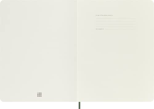 La confezione contiene un taccuino con layout a quadretti e copertina morbida, disponibile nel formato Extra Large 19 x 25 cm da 192 pagine e nel colore verde mirto