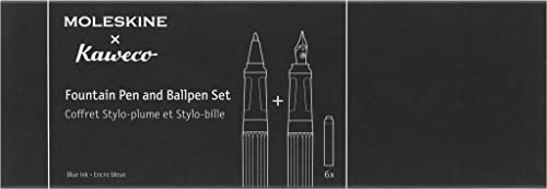 Moleskine x Kaweco, Penna Stilografica in Plastica ABS con Pennino Misura M Placcato in Oro e Penna a Sfera Ricaricabile, Ricaricabile con 1,0 mm di Inchiostro Blu, 6 cartucce Incluse, Colore Nero