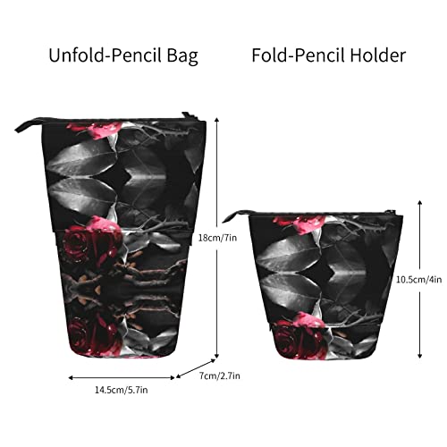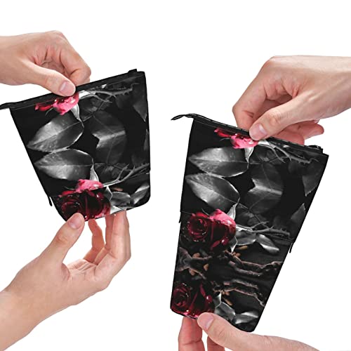 MOLIAE Astuccio telescopico per matite con stampa di rose nere gotiche, per ufficio scolastico