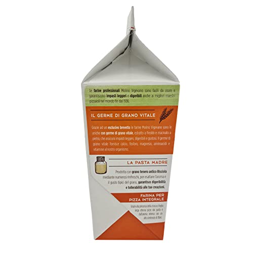 Molino Vigevano, Farina Grano Tenero Integrale, La Farina Bio per Pizza Integrale, ideale per Pizza e Pane Integrale. Confezione 500g