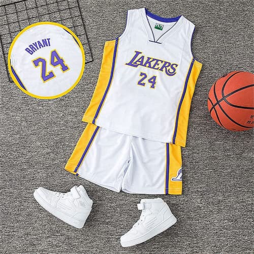 Molinter Abbigliamento da basket per bambini, senza maniche, maglia e pantaloncini, abbigliamento estivo, set da 1-15 anni, bianco, X-Large