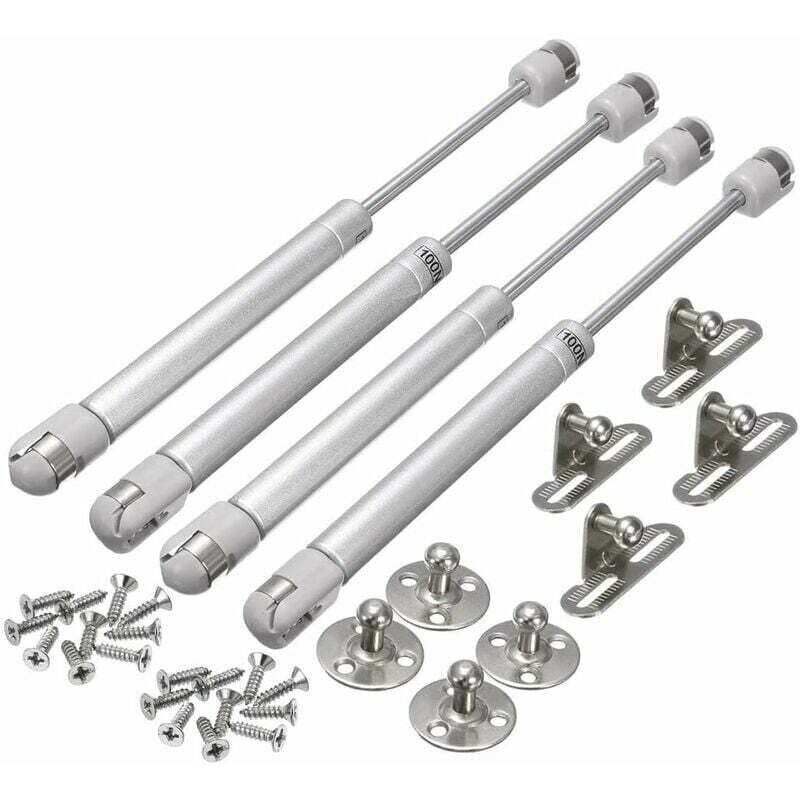 Materiale: il supporto del puntone a gas è realizzato in plastica ABS e lega di zinco resistente, antiruggine e molto sporco Materiale superiore realizzato per l'albero, ad alta resistenza, durevole e pratico Forte pressione del gas - Il supporto della pressione di ciascuna molla può raggiungere 100 N (10 kg), cilindro del pistone riempito con gas inerte - azoto, compressibilità, stabilità e sicurezza Supporto elastico - Adotta il sistema idraulico per un facile funzionamento, ammortizzatore a tutto stadio assorbitore e buona tenuta senza perdite d'olio Installazione stabile - Facile da installare, durevole e stabile. La staffa del gas di sollevamento è adatta per armadi, armadi, ante di mobili, ecc. Scenario applicabile - Adatto a qualsiasi tipo di porta in PVC, alluminio o legno;