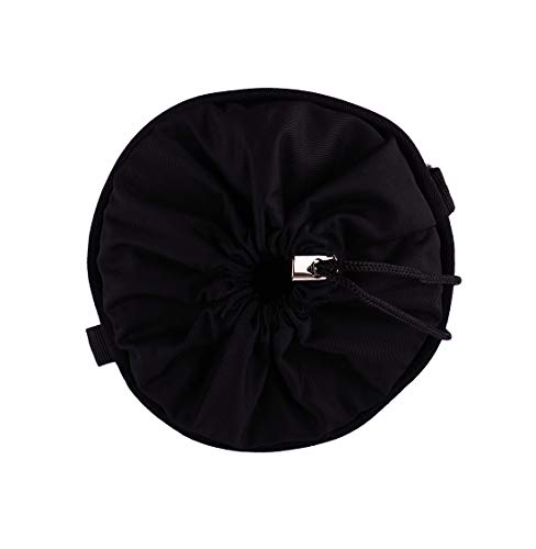 Colori: esterno nero. Fondo e parte alta con coulisse in nero. Materiale sacchetto porta-mollette con fodera: 100% cotone. Moschettone: metallo. Coulisse: 100% poliestere