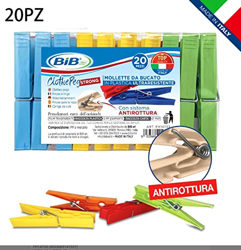 BIB Mollette Bucato In Plastica Ultraresistente 40 Pezzi con Sistema Antirottura - Pinze da Bucato in 3 Colori 9x1,8x1,1 cm (2 pacchi da 20 pz)