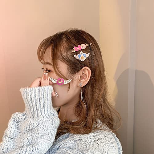 【Set】 Riceverai 5 diversi stili di fermagli per capelli, con ali carine, stelle a cinque punte, cuori, fiocchi, motivi diversi, possono combinare diversi stili di vestiti per te.
