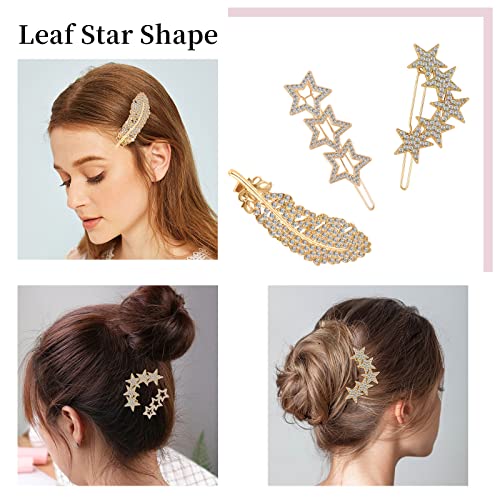 Mollette Capelli Metallo per Donne, Taumie 13 Pezzi Molletta Capelli Geometriche, Strass Mollette Capelli, Geometriche Cava forcine Foglia per Donne, Forcine Metalliche Foglia Piuma Luna Stella Forma
