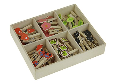Ideali come segnaposto a un matrimonio, fermacarte, mollettine per artigianato, per incartare regali o appendere foto. Lunghezza della molletta: 3 cm. Dimensioni della confezione: 10,5 x 12 cm.