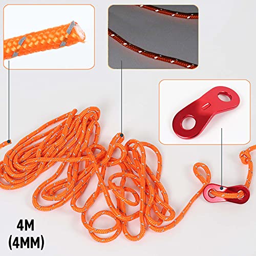 Tenditore in alluminio: Vieni con tenditori in alluminio 6 pezzi, consentono regolazioni facili e robuste, ampiamente utilizzate per il collegamento della corda della tenda e la regolazione della lunghezza.
