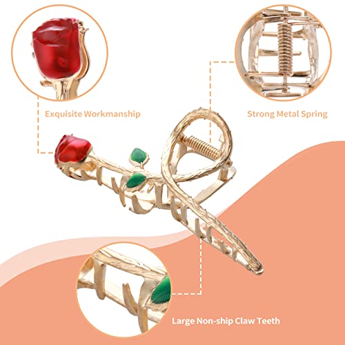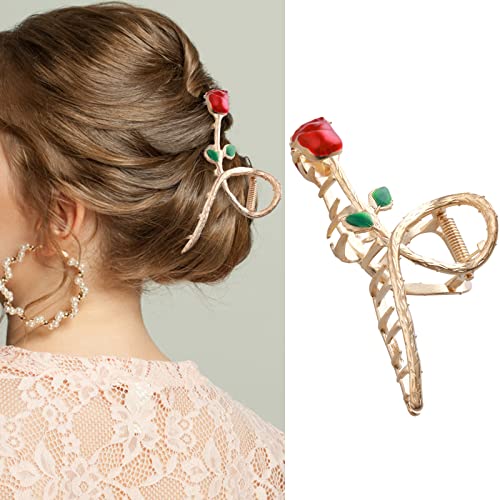 Mollettoni Capelli a Fiore in Metallo Mollettone Capelli Donna Rosa Rossa Fermagli Grandi per Capelli Spessi e Medi Fermagli per Artigli a Tenuta Forte Per Donna San Valentino Accessori per Capelli