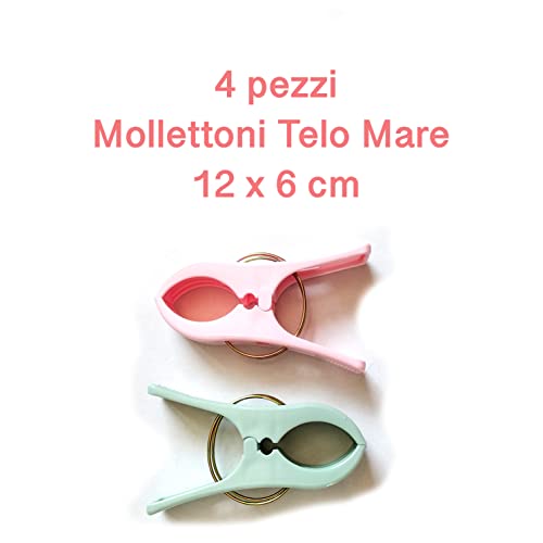 Mollettoni per Telo Mare 4 Pezzi, Mollette per Sdraio da Spiaggia, Mollette in Plastica Grandi Comode e Leggere in 2 Colori Rosa e Verde Acqua