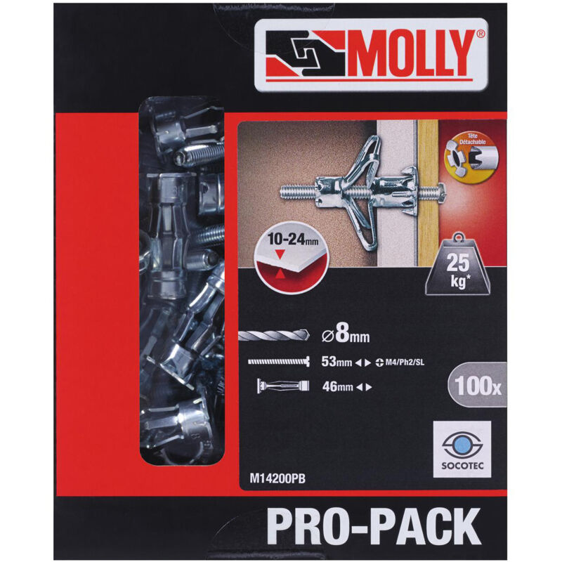 Molly M14200PB-XJ - Tassello metallico e Vite, Grigio, 4 x 46 mm, 200 pezzi
