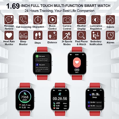 Design Esclusivo: Questo 1,69" orologio intelligente offre uno schermo a colori ad alta definizione con una visualizzazione fluida, ti fa avere un'eccellente qualità dell'immagine. Vi forniamo più di tipi di quadranti, si può anche personalizzare un volto esclusivo orologio caricando le vostre immaginirenditi unico. Inoltre, la regolazione della luminosità a 4 livelli dell'orologio donna ti consente di utilizzare l'smartwatch donna sempre e ovunque.