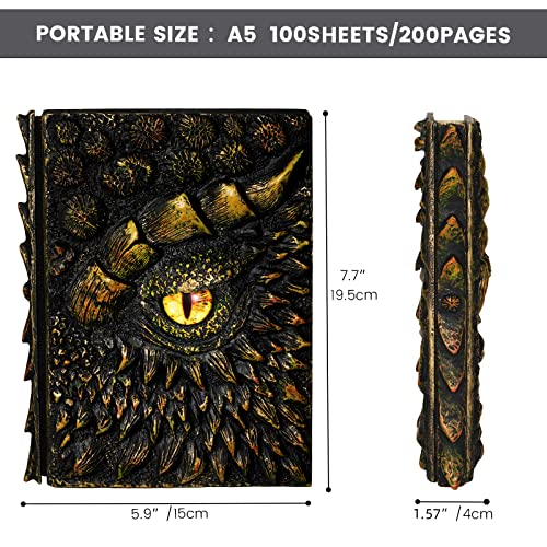 Molshine Taccuino con incisione in resina, formato A5 (7,3 x 5,1"), con drago 3D, 100 fogli, quaderno da viaggio con copertina rigida bianca, quaderno di schizzi, decorazione regalo (oro)