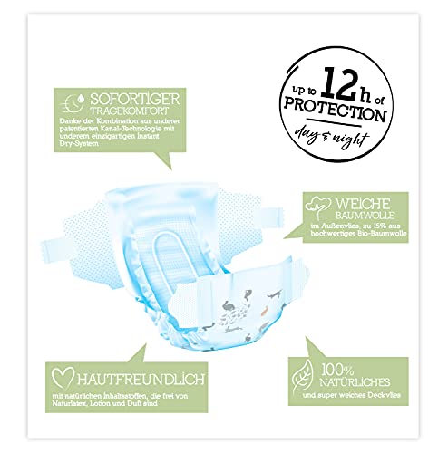 Moltex Pure & Nature - Pannolini ecologici, misura 2 Mini (3-6 kg), confezione per un mese, 152 pannolini biologici (etichetta in lingua italiana non garantita)