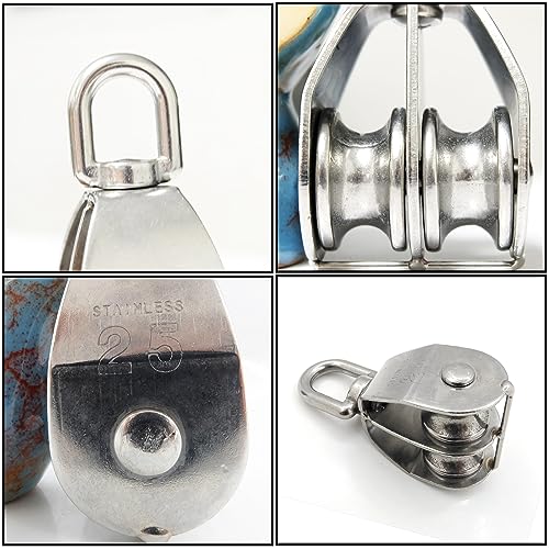 Molyorch Puleggia Carrucola con Gancio, Carrucola Doppia, Puleggia Direzionale, Puleggia Rotante, Puleggia Acciaio Inossidabile, per Campeggio, Escursione, Accessori fai da te (M25)