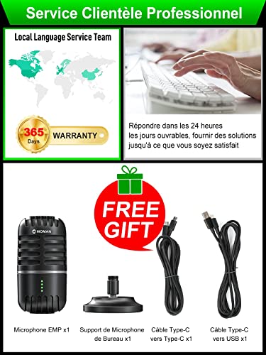 Moman EMP Mic Condenso, nessun tempo di trasmissione, microfono per la registrazione in streaming, giochi di YouTube conferenze in linea, USB-Microfone-PC-Computer Condensatore