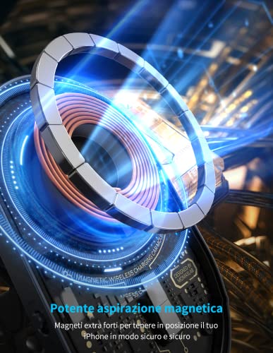 【Guida sicura e facile】Semplifica la guida con il supporto magnetico per auto di ricarica. Superficie magnetica a scatto per visualizzare il tuo iPhone e ricarica wireless allo stesso tempo. Il miglior compagno di guida. L'adattatore per auto non è incluso.