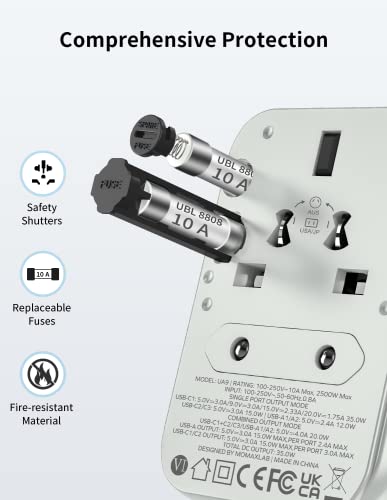 Consigli - L'adattatore da viaggio internazionale è dotato di un fusibile di sovraccarico sostituibile da 10A che interrompe l'alimentazione in caso di corrente troppo elevata. Ci impegniamo a fornire a ogni cliente prodotti e servizi affidabili. Se avete domande, non esitate a contattarci.