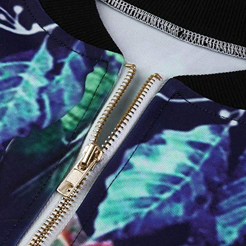 MOMBIY Cappotto da donna per autunno e inverno, comodo, casual, alla moda, con stampa, uniforme da baseball a maniche lunghe, con cerniera, Blu, L