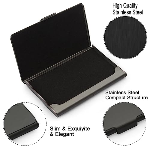 Momeski Porta biglietti da visita - Porta biglietti da visita sottile per uomo e donna - Porta biglietti da visita tascabile in metallo - Porta biglietti da visita acciaio inossidabile - Nero
