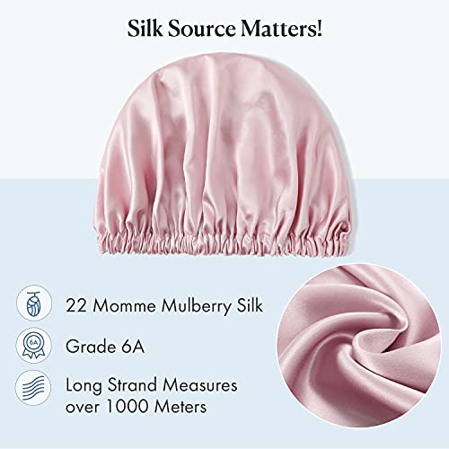 Mommesilk - Berretto da donna in seta, 22 Momme, regolabile, elastico in pura seta di gelso, per berretti rosa M/L