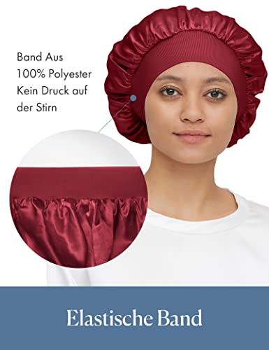 Mommesilk - Berretto da notte da donna, con pelo lungo, morbido e elastico, per dormire, cancro, chimico, perdita di capelli, confezione multipla rosso vivo Taglia unica