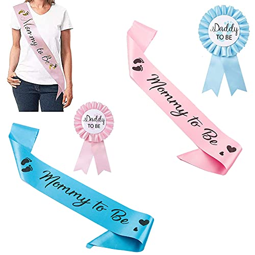 Mommy To Be '' Sash '' Daddy To Be '' Badge 4 Pezzi Baby Shower Decoration Rivela Il Genere Per La Celebrazione Della Festa Del Baby Shower, Decorazione Per La Festa Di Benvenuto Del Bambino