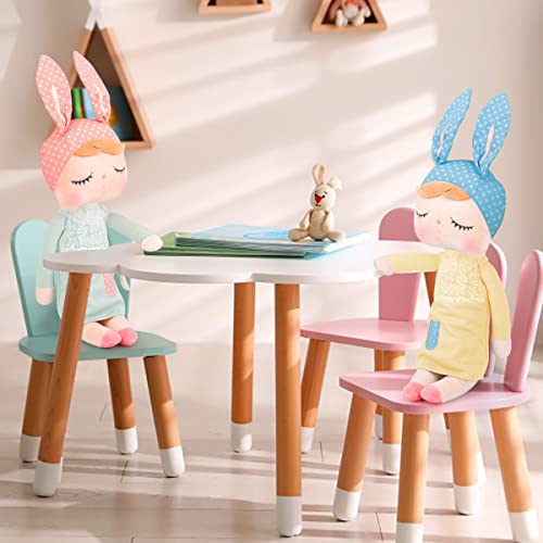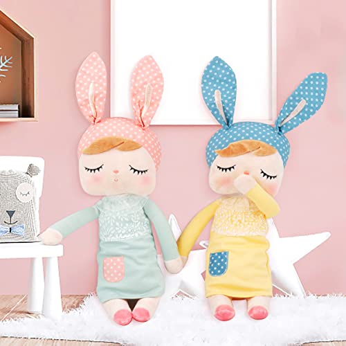 MOMSIV 13'' Metoo Angela Sleeping Bunny Rabbit Girl Baby Stuffed Plush Dolls Toys, Blue Ears with Yellow Dress