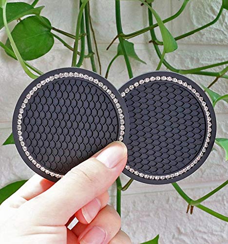 MONALA Sottobicchieri per auto antiscivolo universali per interni di veicoli, con cristalli e sottobicchiere, accessori per interni da donna, 1 pezzo da 70 mm (stile C nero rosso)