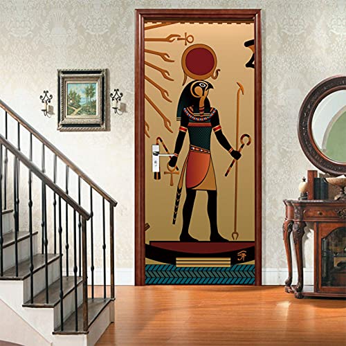 A.Monamour Adesivo Porta Autoadesiva Gli dei Dell'Antico Egitto Aton E Ra Vinile PVC Adesivi per Porte Interne 3D Pellicola Adesiva Poster Sticker Murale Parete Carta da Parati