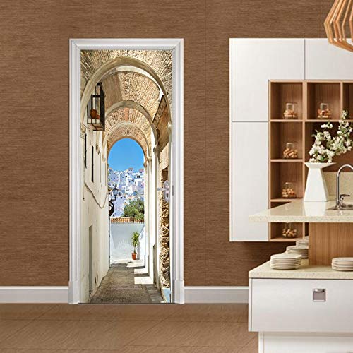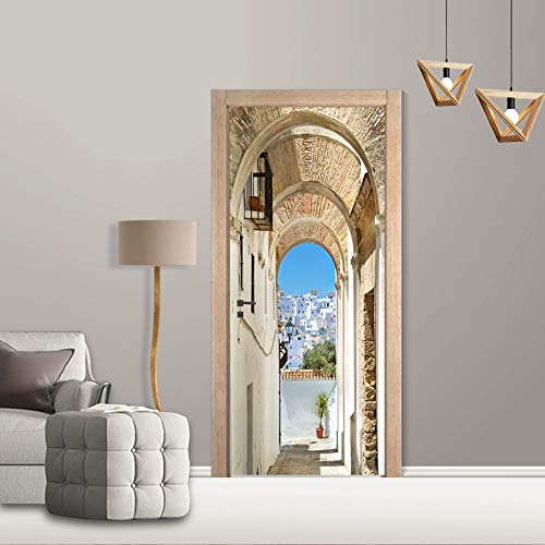 A.Monamour Adesivo Porta Autoadesiva Archi in Pietra Vejer De La Frontera Villaggi in Andalusia Spagna Vinile PVC Adesivi per Porte Interne 3D Pellicola Adesiva Poster Sticker Murale Carta da Parati