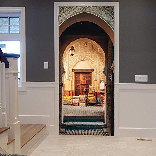 A.Monamour Adesivo Porta Autoadesiva Ingresso Ad Arco Storico Mediterraneo Porta Marocchina Vinile PVC Adesivi per Porte Interne 3D Pellicola Adesiva Poster Sticker Murale Decorazione da Parete