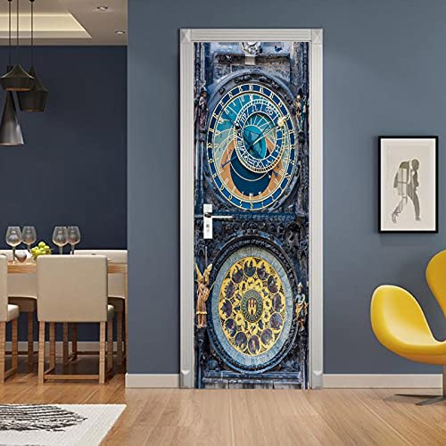 A.Monamour Adesivo Porta Autoadesiva Orologio Astronomico di Praga Vinile PVC Adesivi per Porte Interne 3D Pellicola Adesiva Poster Sticker Murale Decorazione da Parete Carta da Parati