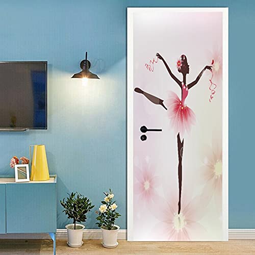 A.Monamour Adesivo Porta Autoadesiva Ragazza Ballerina Disegno Arte Vinile PVC Adesivi per Porte Interne 3D Pellicola Adesiva Poster Sticker Murale Parete Carta da Parati
