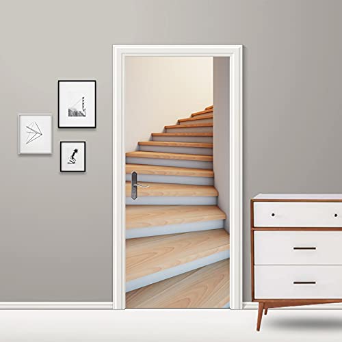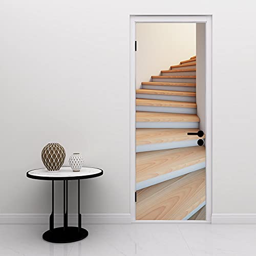 A.Monamour Adesivo Porta Autoadesiva Una Scala A Chiocciola Scala in Legno Scale Vinile PVC Adesivi per Porte Interne 3D Pellicola Adesiva Poster Sticker Murale Decorazione da Parete Carta da Parati