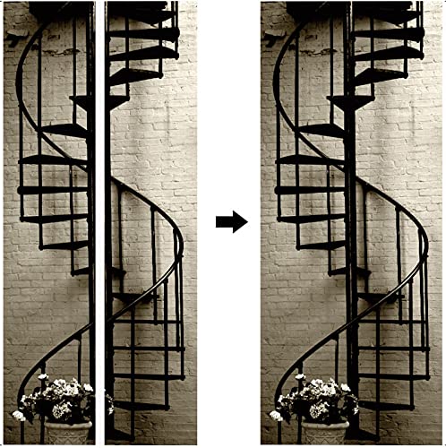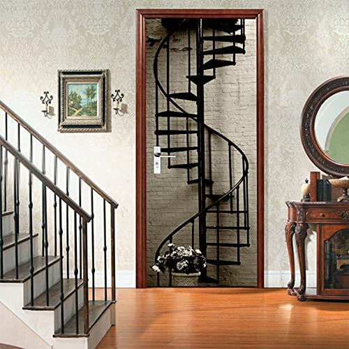 A.Monamour Adesivo Porta Autoadesiva Scala Interna A Chiocciola in Metallo Vinile PVC Adesivi per Porte Interne 3D Pellicola Adesiva Poster Sticker Murale Parete Carta da Parati