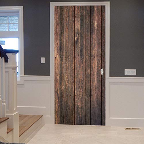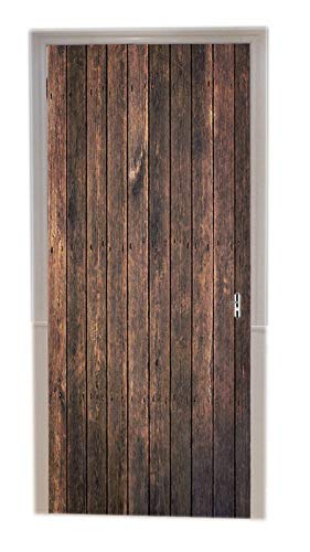A.Monamour Adesivo Porta Autoadesiva Trame Di Legno Della Porta Della Stalla Delle Assi Di Legno Verticali Marrone Scuro Del Grunge Vinile PVC Adesivi per Porte Interne 3D Pellicola Adesiva Sticker