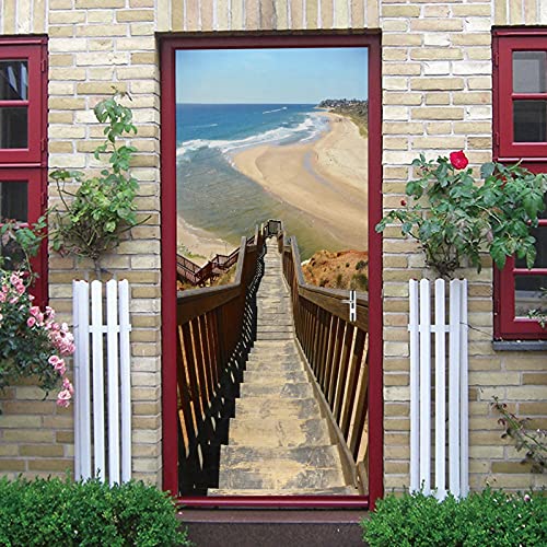 A.Monamour Adesivo Porta Autoadesiva Vista delle Scale Verso L'Oceano al Porto Noarlunga South Australia Vinile PVC Adesivi per Porte Interne 3D Pellicola Adesiva Poster Sticker Murale Parete
