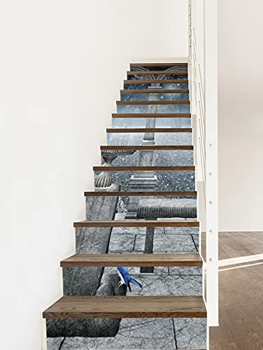 A.Monamour 13 Pezzi Adesivi per Scale Alzate Gradini Autoadesiva 3D Porta Ad Arco Del Patio In Pietra Di Marmo Della Sala Del Vecchio Palazzo Gotico Vinile PVC Adesivo Pellicola Scala Scalini Stickers