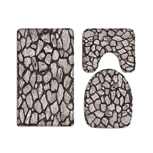 A.Monamour Set Tappeti Bagno 3 Pezzi Completo Fondo Di Struttura Del Muro Di Pietra Di Mattoni Di Cemento Antiscivolo Morbidi Assorbente Lavabile Tappetini per Il Bagno WC Bidet