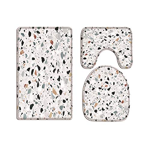 A.Monamour Set Tappeti Bagno 3 Pezzi Completo Pietra Terrazzo Pavimentazione Texture Di Sfondo Astratto Modellato Antiscivolo Morbidi Assorbente Lavabile Tappetini per Il Bagno WC Bidet