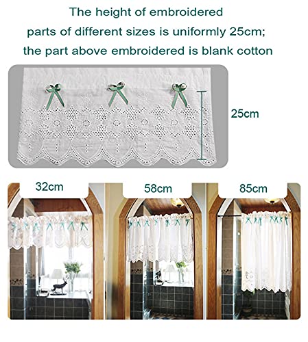 A.Monamour Tenda a Mantovana in Cotone Bianco Ricamato Pizzo Rustico Tenda Corta Mezza Tenda Piccola Tenda Porta Tenda Armadio Tenda Finestra a Vetro per Cucina Bistrot Caffè - Fiocco Verde Chiaro