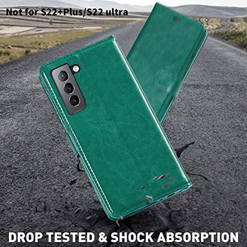 MONASAY Custodia Samsung Galaxy S22, Cover Samsung Galaxy S22, Custodia in Pelle Magnetica Libro Flip Antiurto Portafoglio [Supporto Stand] con Porta Carte per Samsung Galaxy S22 6,1 Pollici, Verde