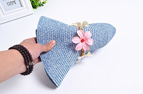 Monbedos, cappellino di paglia per bambine, a tesa larga, regolabile e pieghevole, con motivo floreale, ideale per proteggere dal sole e in spiaggia, rosa, 50-52cm